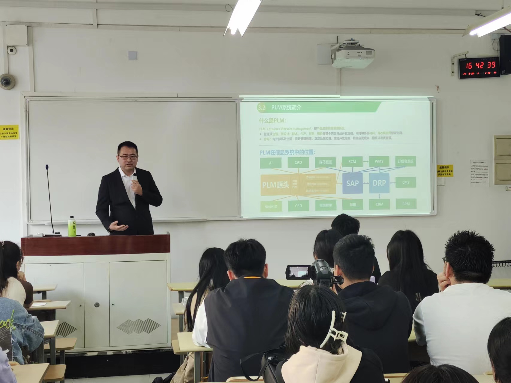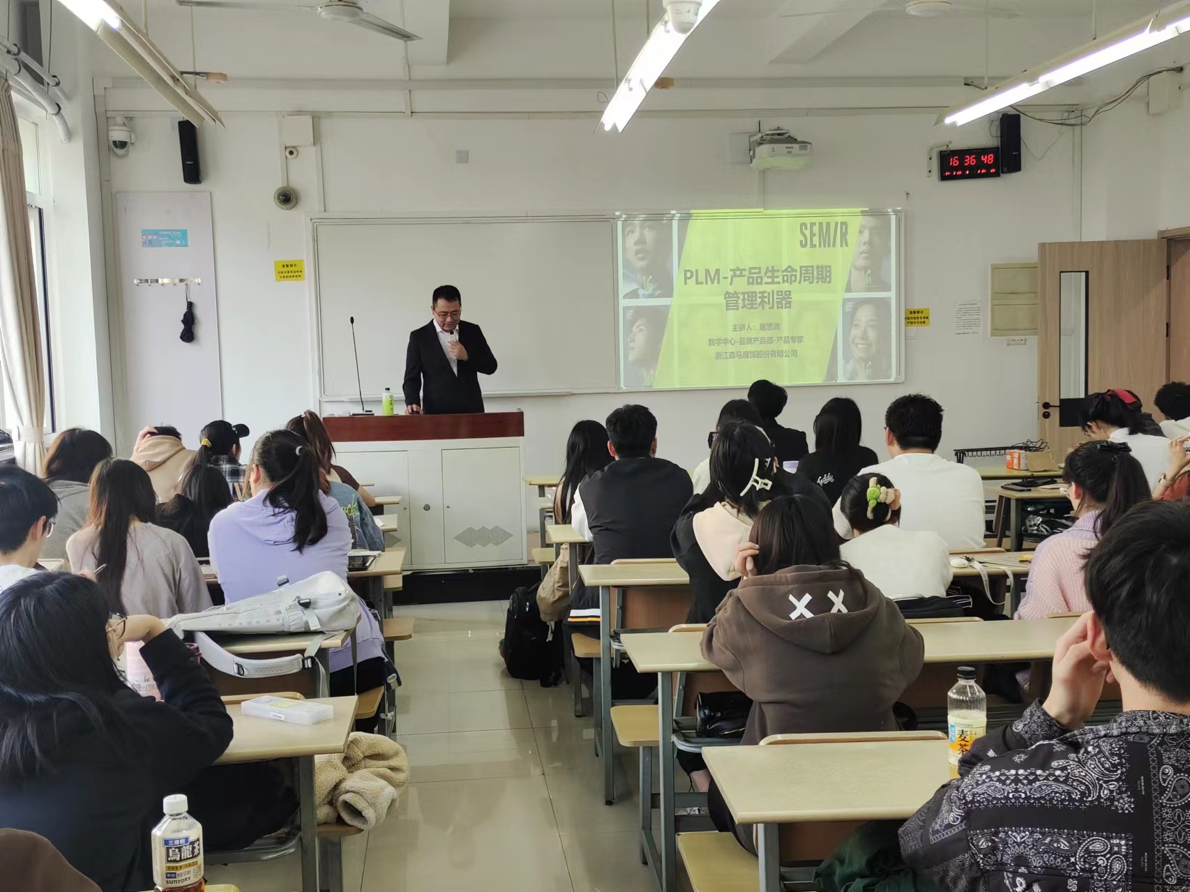 2024年3月29日,浙江森马服饰股份有限公司产品专家唐思渊老师应邀在教学楼-C206为同学们带来了一场非常精彩的专题讲座,报告的主题为PLM-产品生命周期管理利器。本次报告旨在让同学们结合产业需求更好的了解产品生命周期管理内容、发展状况以及前沿技术,提升教育教学水平。