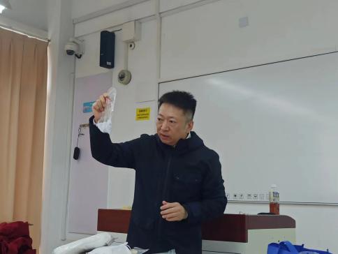 在本次交流中,符浩先生以“非织造材料”为汇报主题,进行了深入的剖析和讲解。他首先概述了非织造材料在多个领域中的广泛应用及其重要性,突显了其在现代科技和社会生活中不可或缺的地位。随后,符浩先生详细阐释了非织造材料的加工方法、分类标准以及结构特点,通过生动的案例和科学的分析,使学生们对非织造材料有了更为全面和深入的了解。期间,符浩先生还展示了多个非织造材料制成的样品,让学生们能够直观地感受到其实际应用价值。