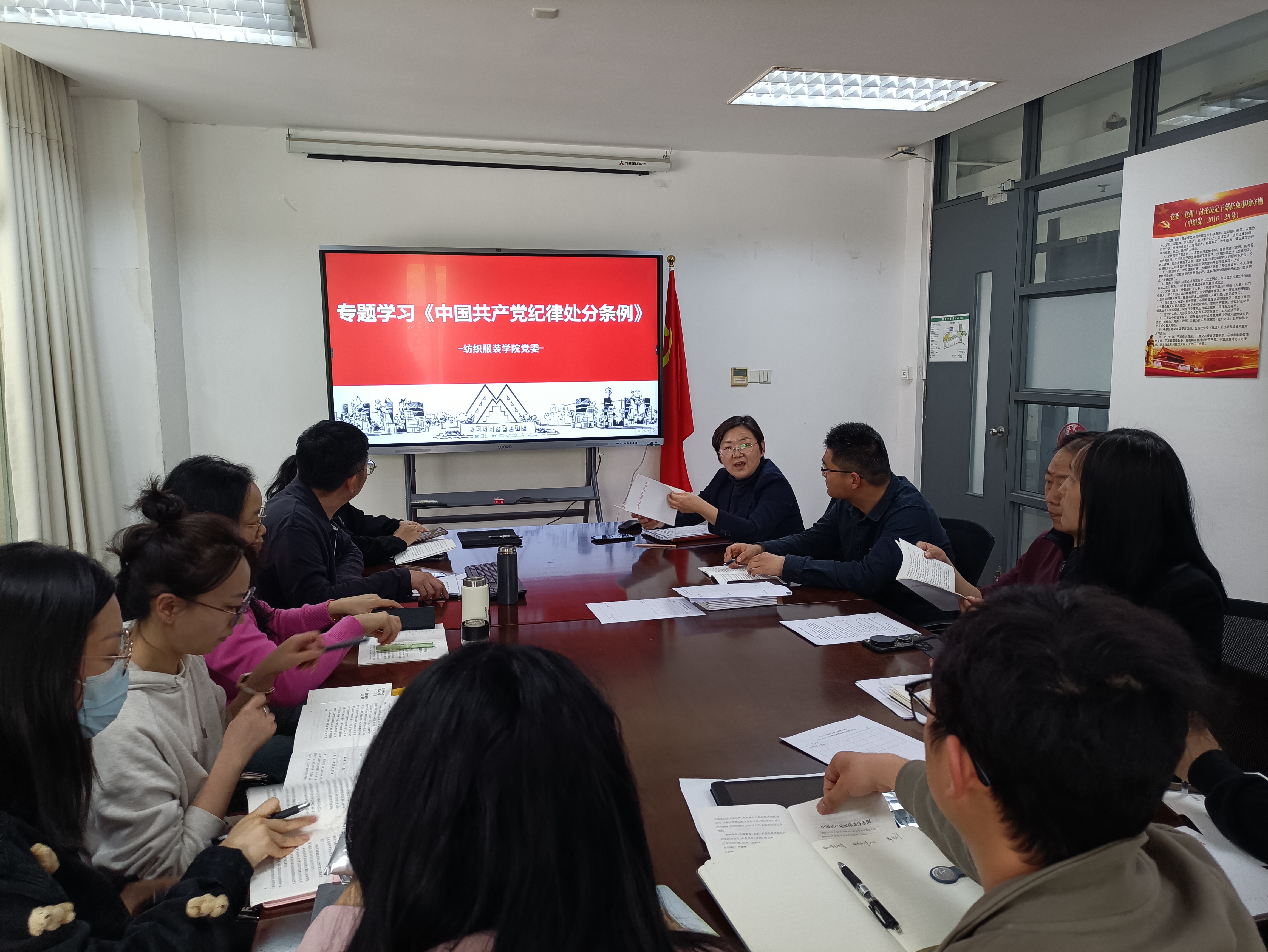 会上,朱君璇书记做了领学,她从《中国共产党纪律处分条例》修订历史、修订意义、主要特点、主要内容以及贯彻落实等方面深入浅出地做出解读,深刻阐述了条例为什么学、学什么、怎么学,有力激发了委员们参与党纪学习教育的积极性、主动性,也为各党支部抓好学习教育指明了方向、明确了目标。同时,与会人员“一起学”,大家逐条领读《条例》第一章和第二章内容,并结合自身工作实际进行交流发言,谈体会、明思路。