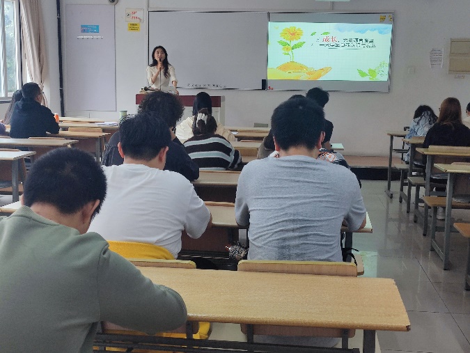 之后,校心理中心教师郭佩佩开展了《成长,力量来自哪里 - 大学生人格探索与发展》讲座。本讲座从心理学、教育学和社会学角度出发,探讨了个体潜能与环境因素的相互作用及其对人格塑造的影响。郭老师深入讲解了如何通过自我认知、情绪管理和有效的人际交往来培养健康成熟的人格特质,并通过实例分析和互动讨论,提供了实用的成长策略和心理调适技巧。