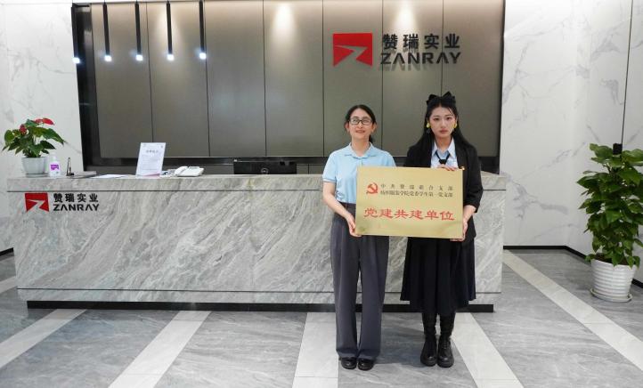 中共上海赞瑞实业有限公司党支部书记张锐与学生第一党支部书记闵语涵围绕党建工作展开交流。现场举行了授牌仪式,双方正式确立互为党建共建单位。