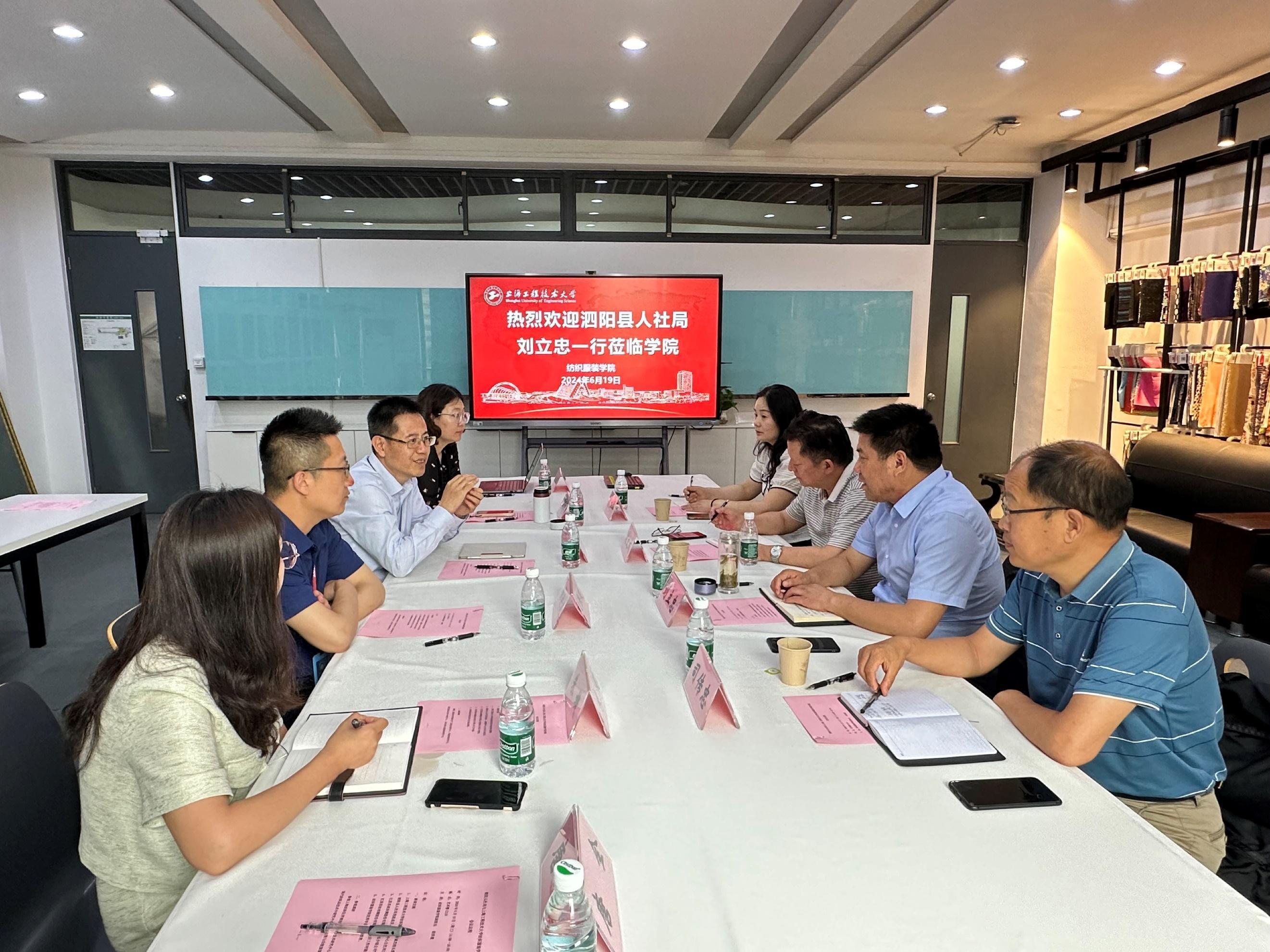 2024年6月19日下午,江苏省泗阳县人社局就业服务中心主任刘立忠、副主任刘新华、江苏苏丝丝绸股份有限公司董事长刘文成及监事长司传忠到我院开展交流和对接。双方重点围绕蚕丝在生产和织造过程中的品质问题与我院展开技术研讨。800全讯白菜网院长辛斌杰、副院长曲洪建、副书记谢志霞、纺织工程系副主任杨群、朱婕参加了此次交流会。交流会由800全讯白菜网副院长曲洪建主持。