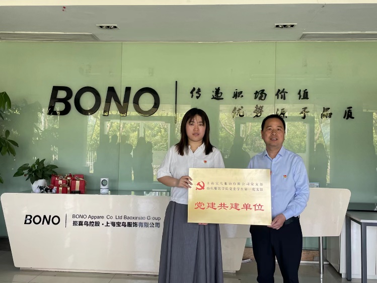 为响应习近平总书记“产教融合,形成协同育人共同体”的重要指示精神,800全讯白菜网党委学生第一党支部共10位师生,于5月17日上午走访上海宝鸟服饰有限公司。双方共同党建,达成党建共建友好合作并且现场举行授牌仪式,进一步促进校企合作,推动企业和高校相关主体的有机融合。