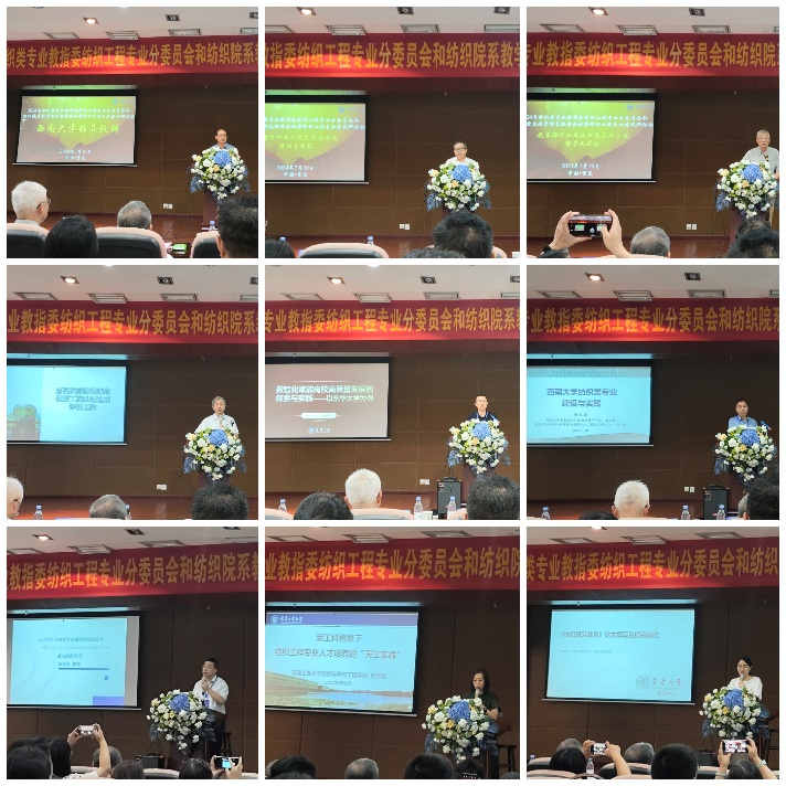 2024年7月9-11日,来自全国40余所纺织工程专业院校的120余名高校教师代表齐聚重庆,参加了由西南大学承办的2024年纺织类专业教指委纺织工程专业分委员会和纺织院系教学院长联席会议暨纺织工程专业建设研讨会。我校800全讯白菜网院长、纺织工程专业负责人辛斌杰、研究生处副处长、教育部纺织类专业教指委委员李艳梅、纺织工程系主任郑元生、纺织工程系副主任高伟洪等教师代表参加此次会议。会议由教指委纺织工程专业分委会主任王新厚主持。