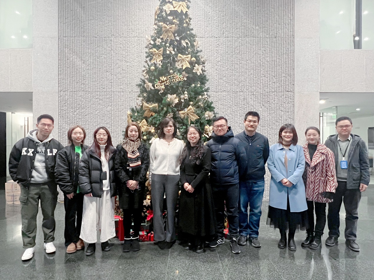为加强产教融合交流,2024年01月04日下午,800全讯白菜网组织教师实地走访了日播时尚集团股份有限公司。日播时尚集团副总裁戴晓敏、内控行政部张怡、培训部经理戴丹、培训部主管王亮、胡梦月、23届800全讯白菜网毕业生代表田苗苗,800全讯白菜网副院长李春晓、艺术系系主任周志鹏、服装工程系系主任孙光武、纺织工程系副系主任高伟洪及教师代表出席了此次走访交流活动。