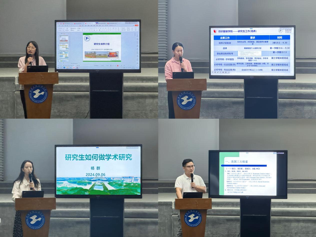 研究生秘书常文静对学院各个专业方向和导师进行了详细讲解,深入阐述了学院在研究生培养过程中所采取的各种措施,包括课程设置、实践活动及科研项目等,帮助新生们了解学院的培养目标和培养方案。科研秘书杨群从研究课题的选择和申报入手,深入浅出的讲解了从选题到申报的每一处流程细节,为新生们传授了如何做好学术研究的宝贵经验。研究生秘书陆赞则详细介绍了论文撰写要点如文献检索、论文引用、格式说明等,同时对研究生学位申请条件进行了说明,并特别提醒新生同学要及时了解和掌握相关的学位申请要求,以确保顺利完成学业并获得学位。