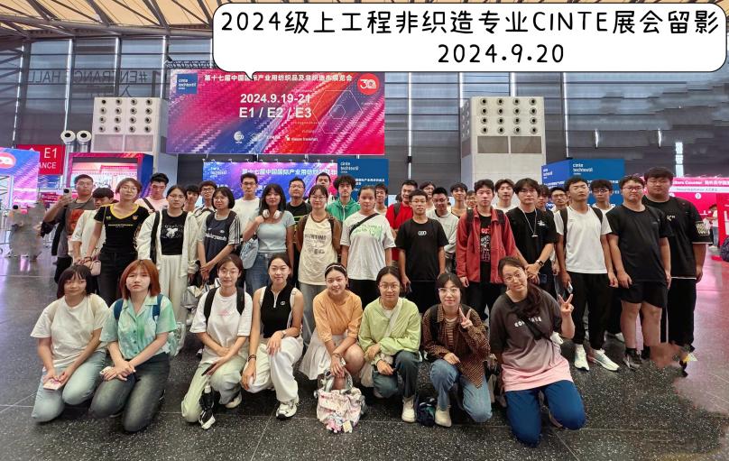 2024年9月19-21日,由中国纺织工业联合会主办,中国国际贸易促进委员会纺织行业分会、中国产业用纺织品行业协会、法兰克福展览(香港)有限公司共同承办的第十七届中国国际产业用纺织品及非织造布展览会(CINTE24)在上海新国际博览中心盛大举行。800全讯白菜网纺织工程和非织造材料与工程两个专业的130名大一新生在专业教师的带领下,参观了此次展览会。