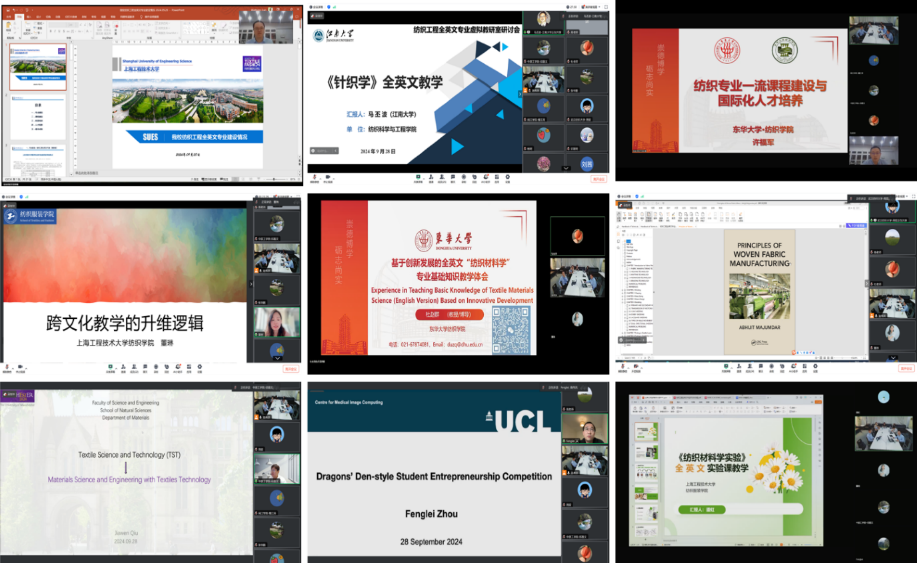 会上,高伟洪首先对我校纺织工程全英文本科专业及其虚拟教研室的建设情况进行了总结汇报,随后,来自东华大学、江南大学、浙江理工大学、伦敦大学学院、武汉纺织大学、中原工学院以及我校的10名教师代表做了精彩的报告。