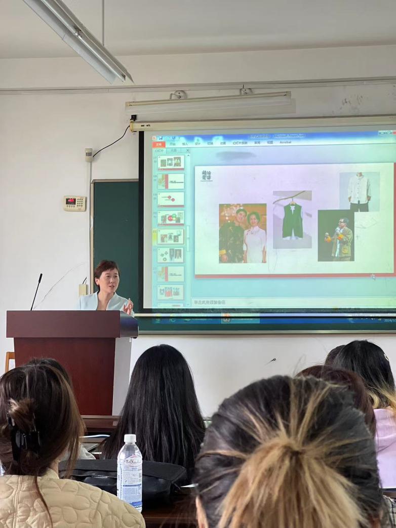 王芸女士凭借多年对新中式服装的深入研究,从市场需求的角度出发,为师生们揭示了新中式服装如何在保留传统文化精髓的同时,巧妙融入现代设计理念,从而引领时尚潮流的新趋势。王芸女士通过案例分析,生动展示了新中式服装如何将传统文化元素与现代审美巧妙结合。从面料的选择、色彩的搭配到款式的创新,新中式服装在保留传统韵味的同时,也融入了现代时尚的元素,为时尚界带来了全新的视觉冲击。王芸女士的讲解深入浅出,既有理论的高度,又有实践的深度,让同学们在领略中华文化魅力的同时,也对新中式服装的设计理念有了更深刻的理解。此次教学活动旨在深化校企合作,促进产学研融合,搭建起企业专家与高校学子之间的沟通桥梁。