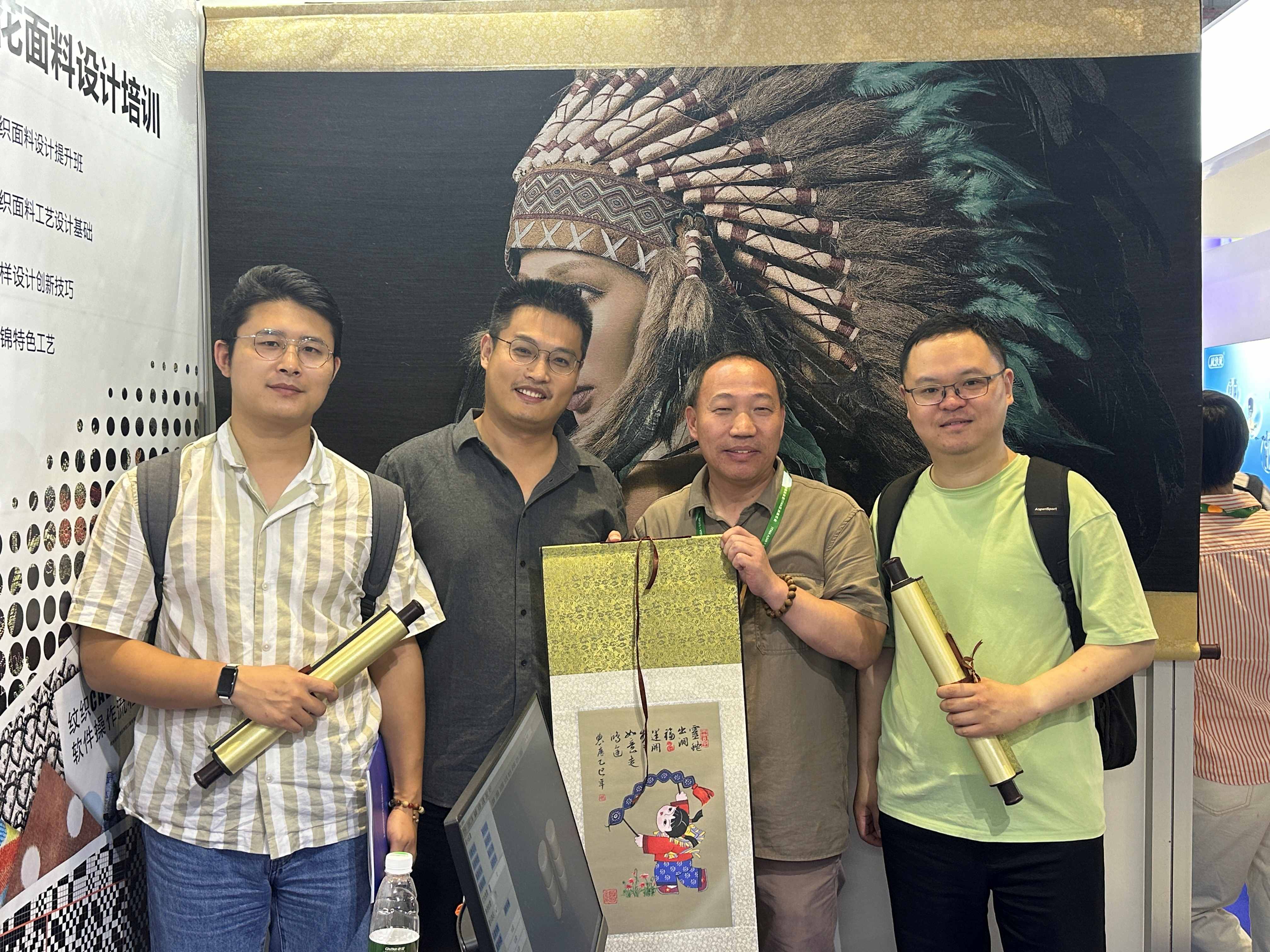 此外,学院教师代表还前往校外实践基地圣东尼(上海)针织机器有限公司、杭州经纬计算机系统工程有限公司等企业展位与企业相关负责人进行了友好交流。杭州经纬刘尊国总经理表示,纺织机械的智能化与数字化将成为未来的发展趋势,企业与高校的合作对于推动这一进程尤为重要。