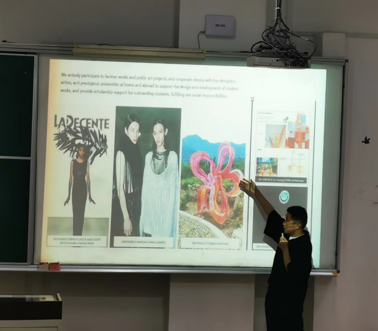 高原Yannis是我们学校毕业的毕业生,此次回校给学生授课,以自己的丰富就业历程为开端,讲述自己在纺织行业中开发金银丝产品的故事。从国内外金银丝产品的发展及变迁历史,可持续物料发展的理念,到金银丝在国内外潮流服饰中的发展应用,科技+时尚元素深深引起了学生们的兴趣。学生在报告后提问自己关于职业的困惑,高原Yannis积极鼓励引导同学,学生们表示受益颇多。
