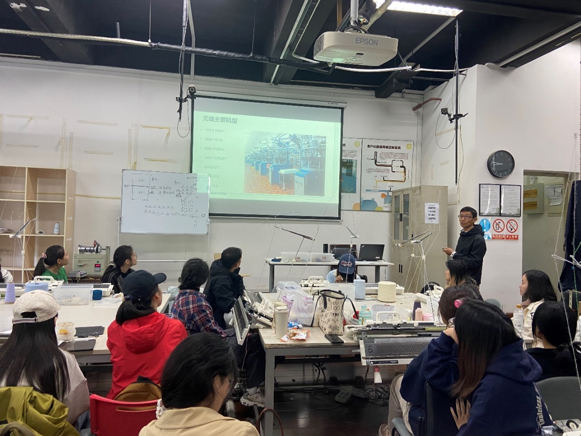 在讲座过程中,夏总给同学们深入浅出的讲述了圣东尼无缝针织设备的主要机型与功能、无缝产品的生产工艺流程、无缝的产品类型与市场发展趋势、以及无缝生产的一些主要样品与组织结构等内容,使同学们更直观地了解企业的最新无缝针织设备与技术,以及企业对人才的需求。夏总还真诚鼓励同学们参与圣东尼每年举办的先锋计划设计师大赛,开拓视野。讲座结束后,还留出问答时间,同学们提出自己的困扰与疑问,夏总给予了耐心解答。