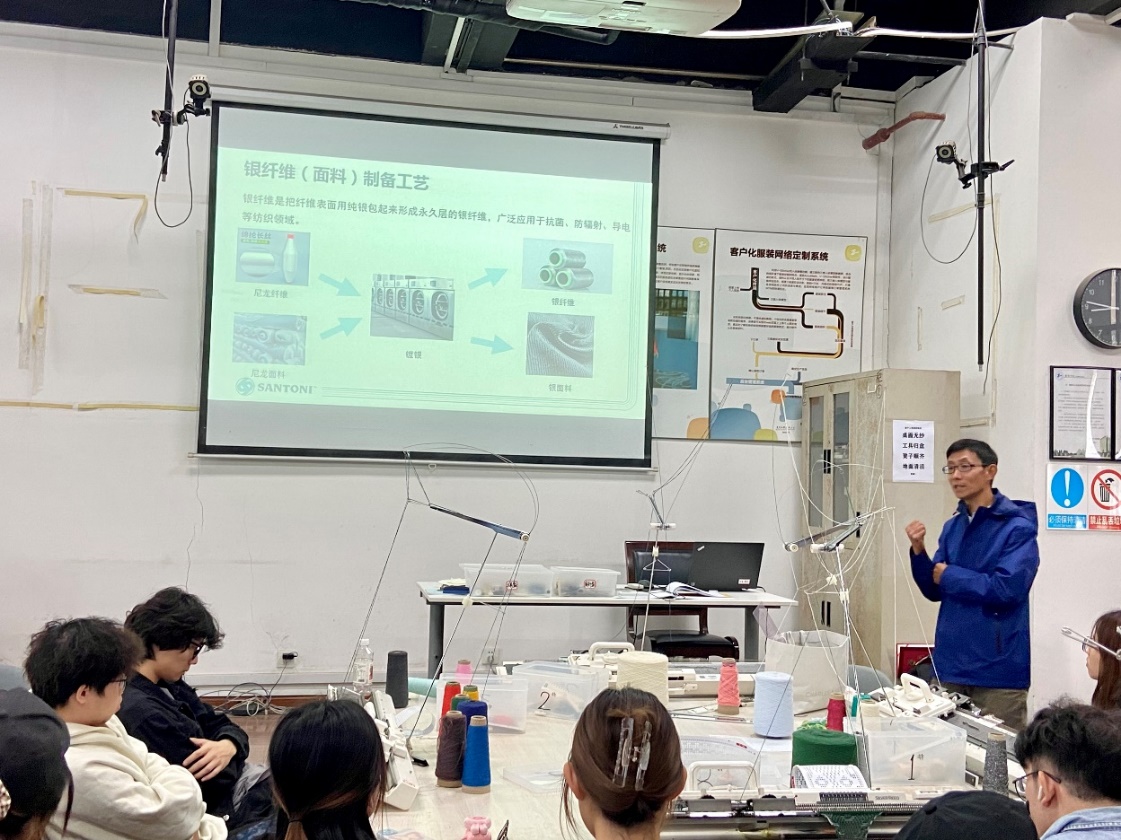 在讲座过程中,夏总给同学们讲述了圣东尼无缝针织研发的最新产品,包括各类吸湿快干运动服、银纤维面料的制备(测心率)与智能可穿戴服装的研发。使同学们更直观地了解企业的最新技术与产品研发思路,以及企业对人才的需求。讲座结束后,还留出答疑时间,一名同学就自己的大创项目和夏总进行了深入探讨,并提出了后续合作的可能性,夏总非常欢迎同学们进圣东尼公司参观及洽谈项目。