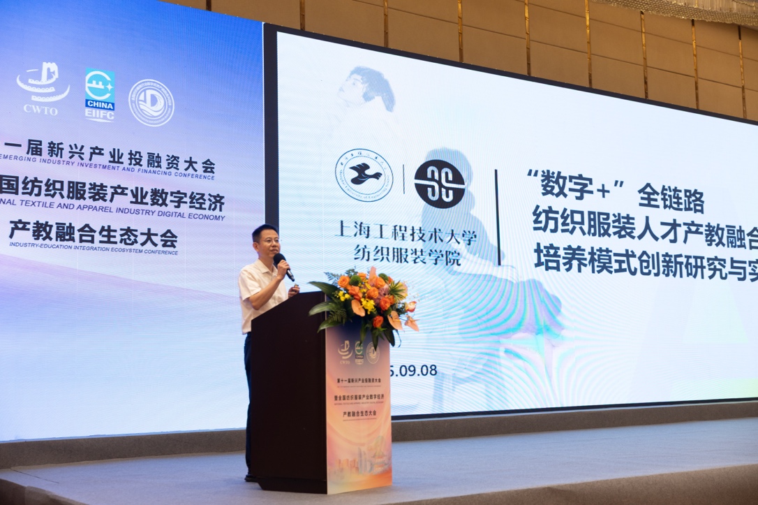 大会研讨环节,辛斌杰院长发表了《“数字 +” 全链路纺织服装人才产教融合培养模式创新研究与实践》主旨演讲,提出 “基础筑基 — 数字赋能 — 场景实战” 三位一体培养体系,介绍学院与企业共建实训基地、开发模块化课程、组建双师团队等举措。