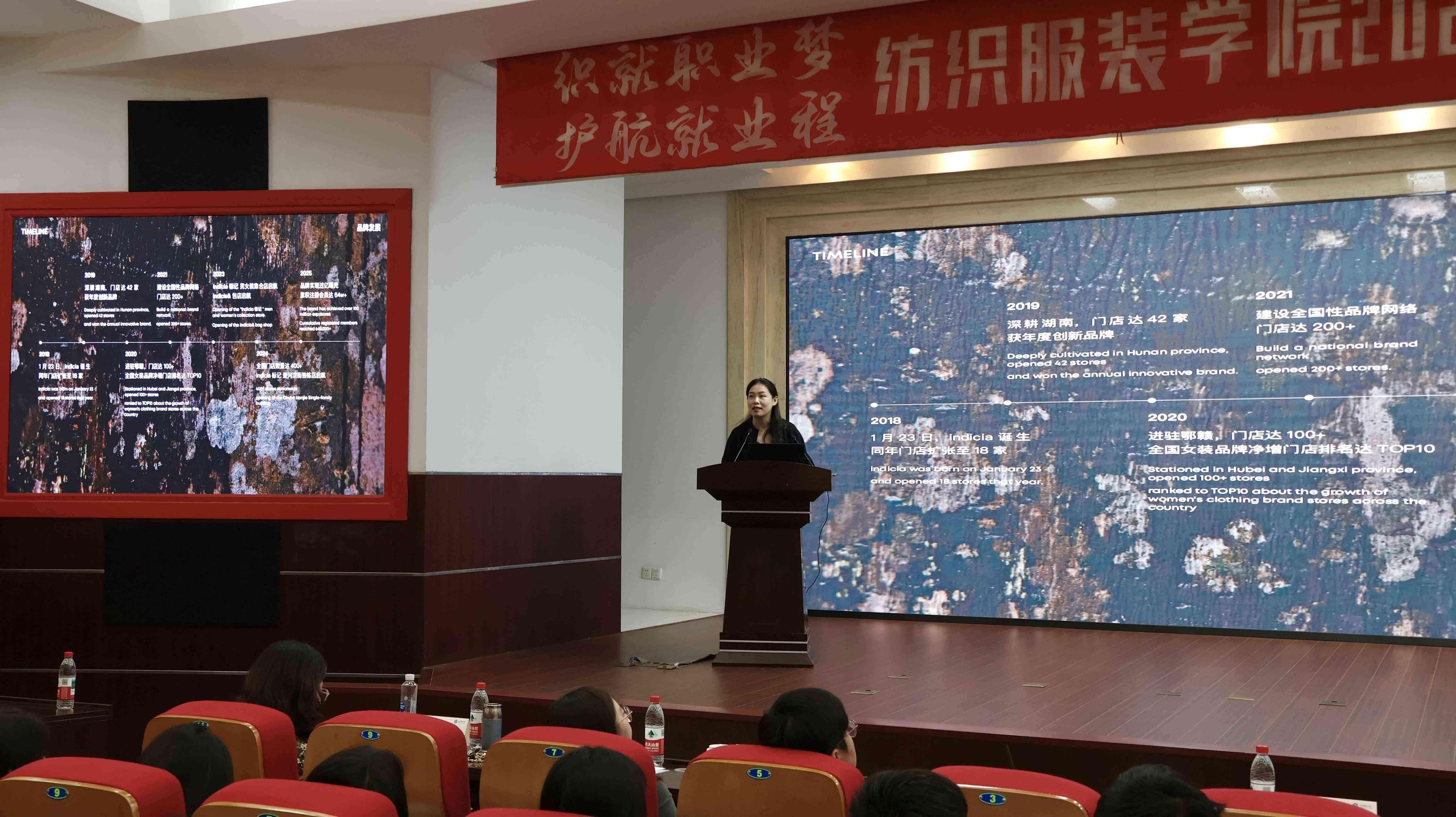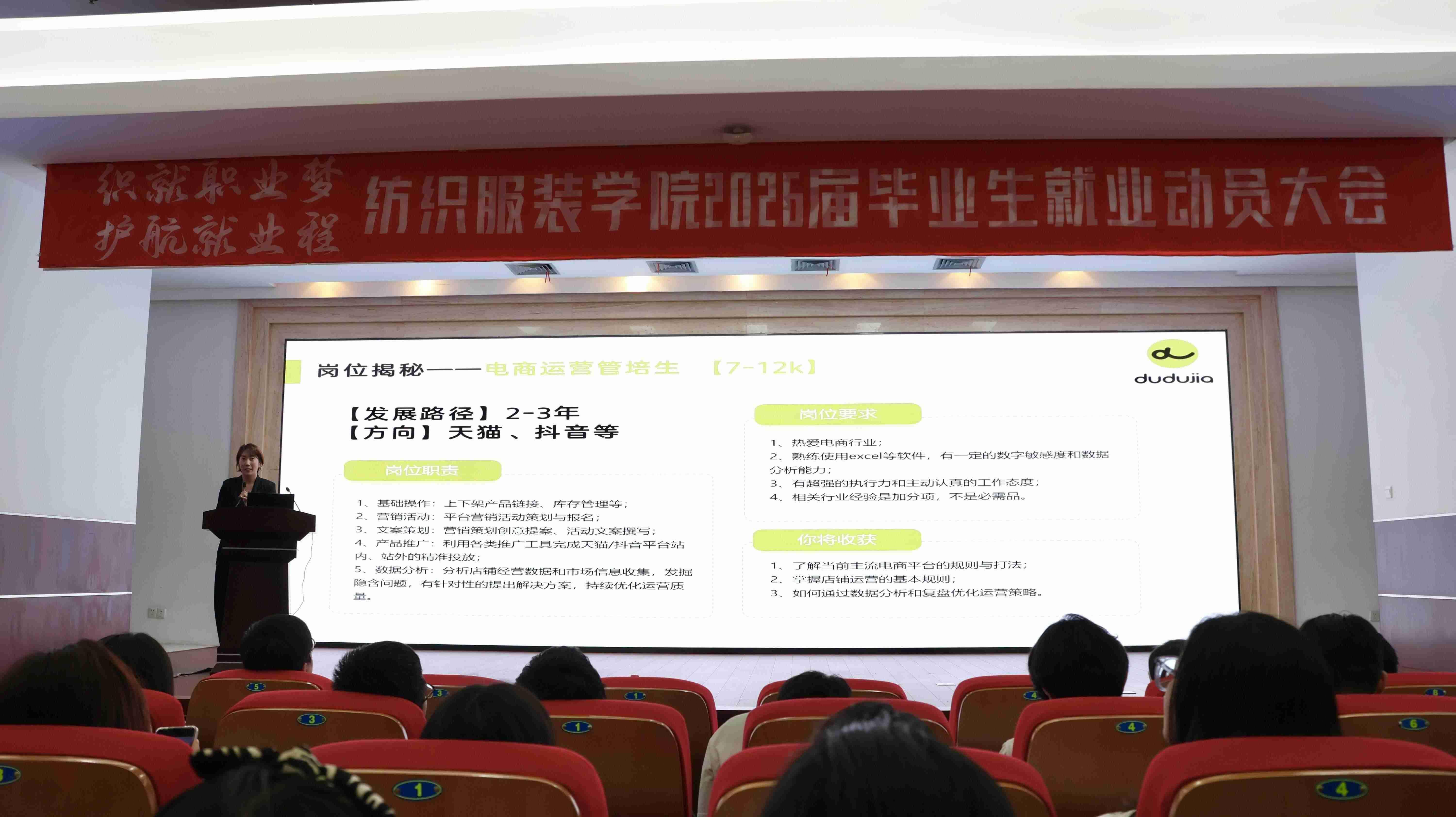 斐乐服饰、标记服装(浙江)、上海嘟嘟家科技集团三家企业代表作招聘宣讲,介绍企业特色与岗位需求,邀请毕业生投递简历。会后,毕业生与企业代表一对一交流岗位细节,学院同步联合CFW 纺织服装人才网推送海澜之家、波司登、鄂尔多斯等56家纺织服装知名企业岗位需求。