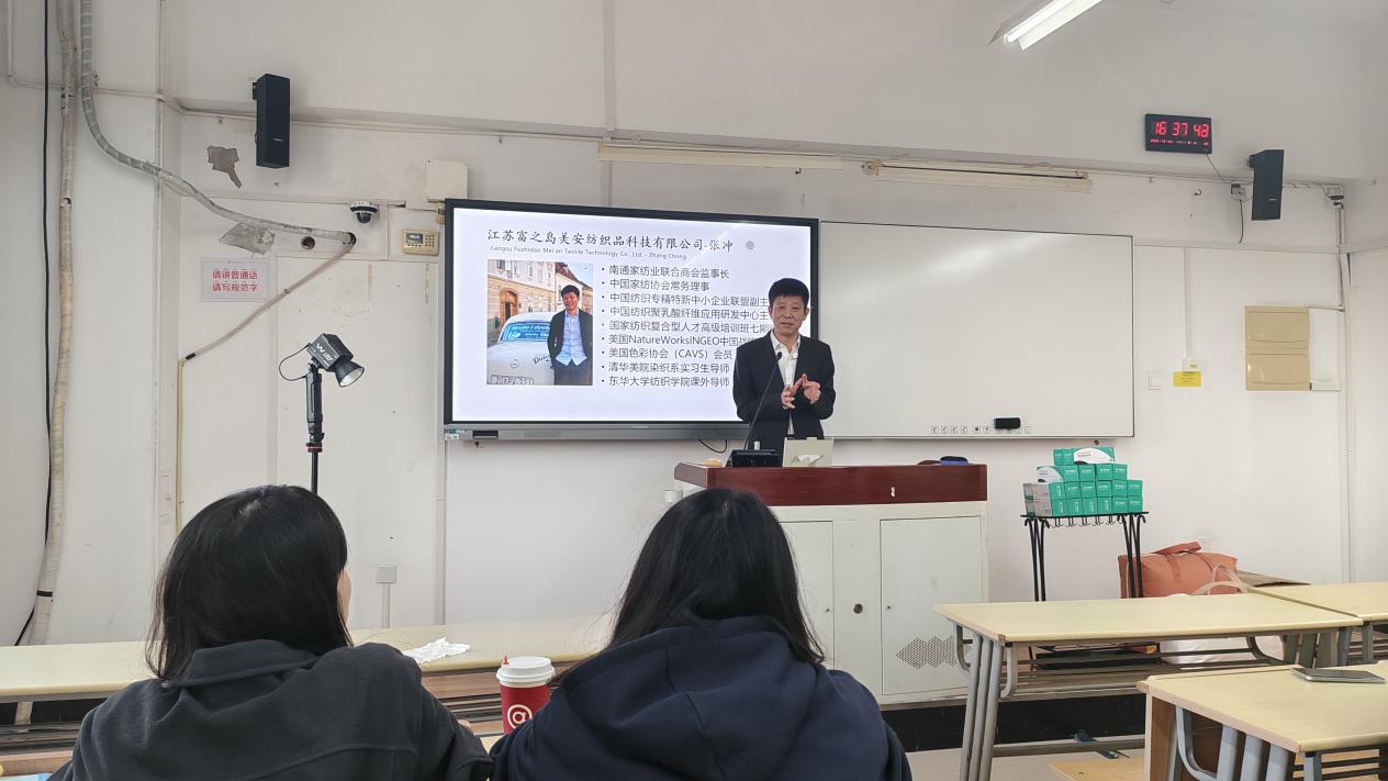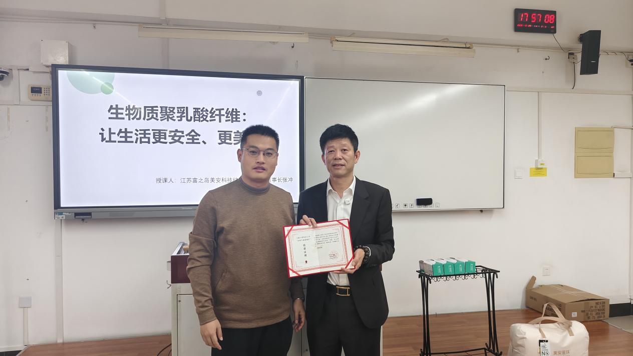 10月23日,800全讯白菜网邀请江苏富之岛美安科技纺织有限公司董事长张冲走进材料与化工专硕课堂,以“生物质聚乳酸纤维:让生活更安全、更美好”为主题授课,深化产教融合,落实学校卓越工程师培养要求。