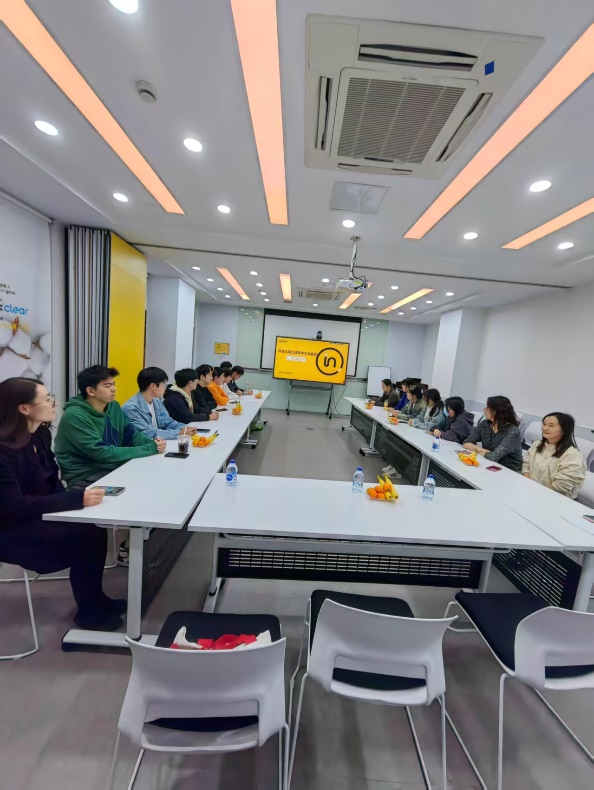 我院共有 12 名学生在天祥实习。座谈会上,企业带教导师首先对学生表现给予高度评价,称赞同学们专业功底扎实、学习与英文能力突出,仅需一天即可完成岗位培训并承担工作任务,充分展现出优良的职业素养与高效的职场适应能力。随后,12 名实习生依次分享了各自所在部门及具体岗位职责。从交流中能清晰看出,同学们已深度融入企业团队,全程参与了样品准备、实验测试、数据处理、系统报表填写、报告出具及客户售后服务对接等核心工作环节,实践能力得到充分锻炼。