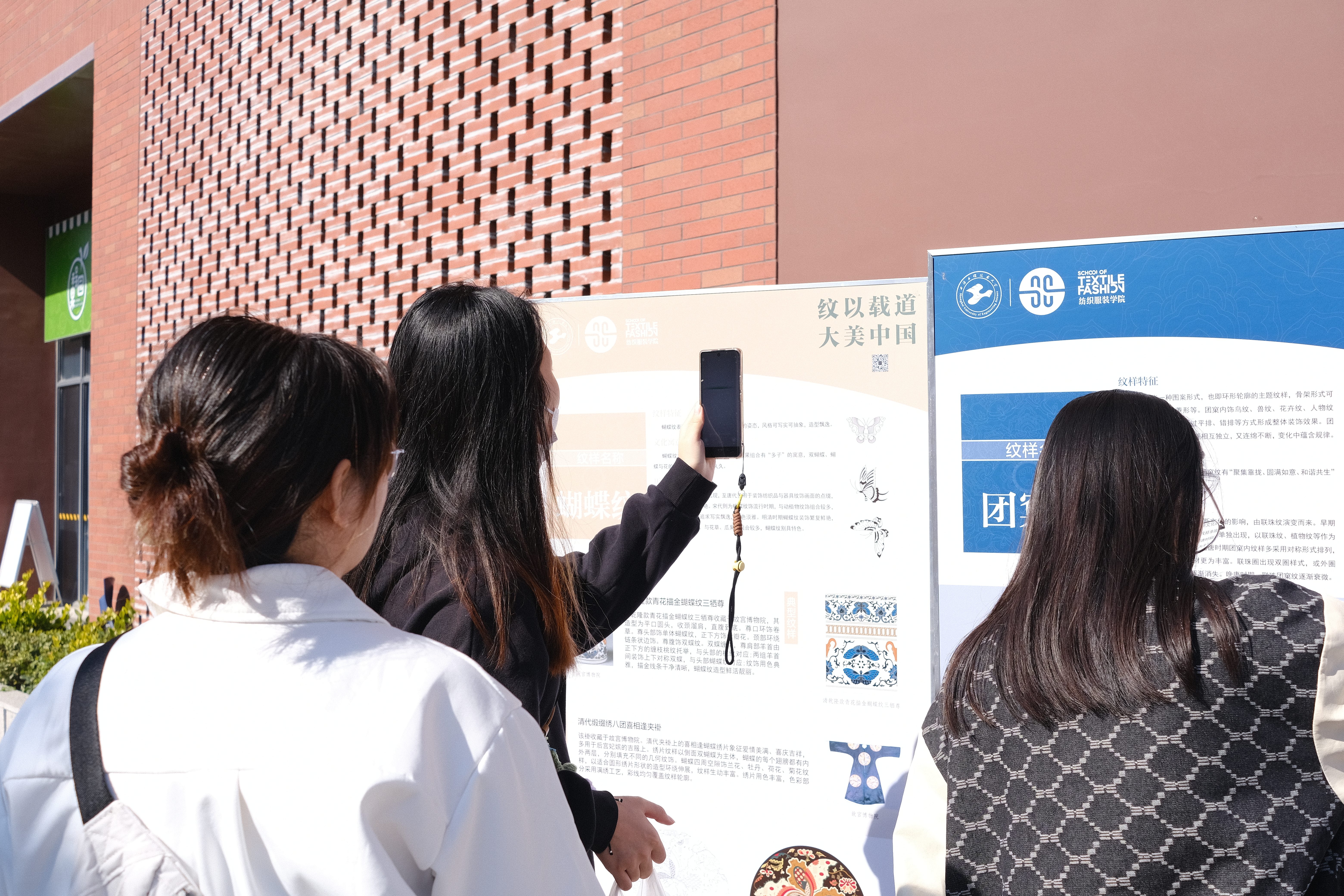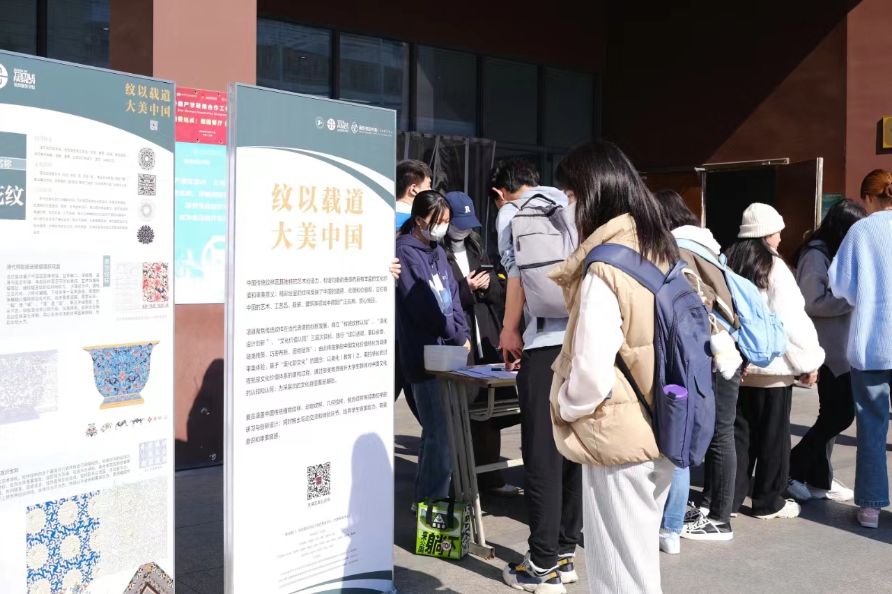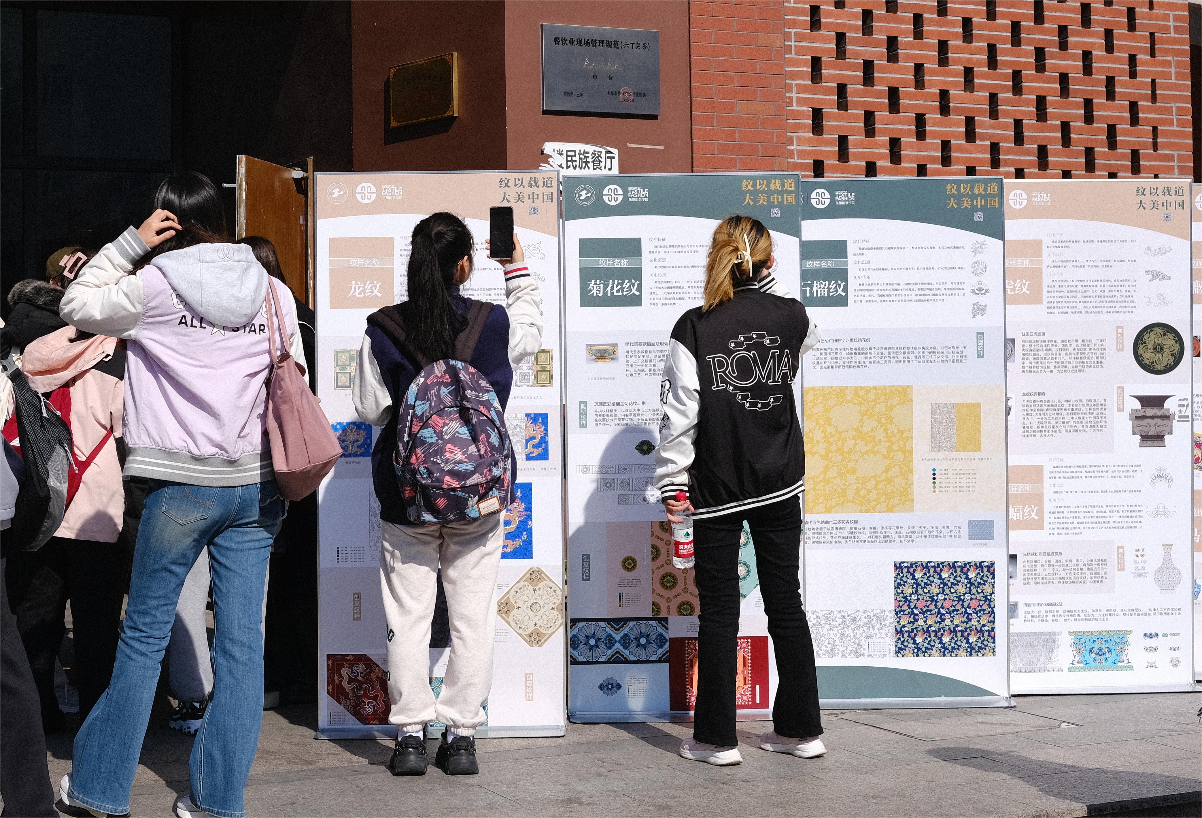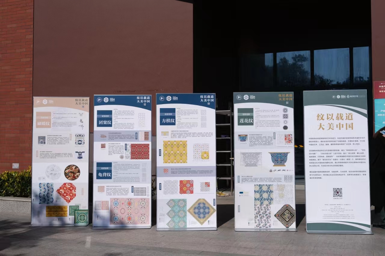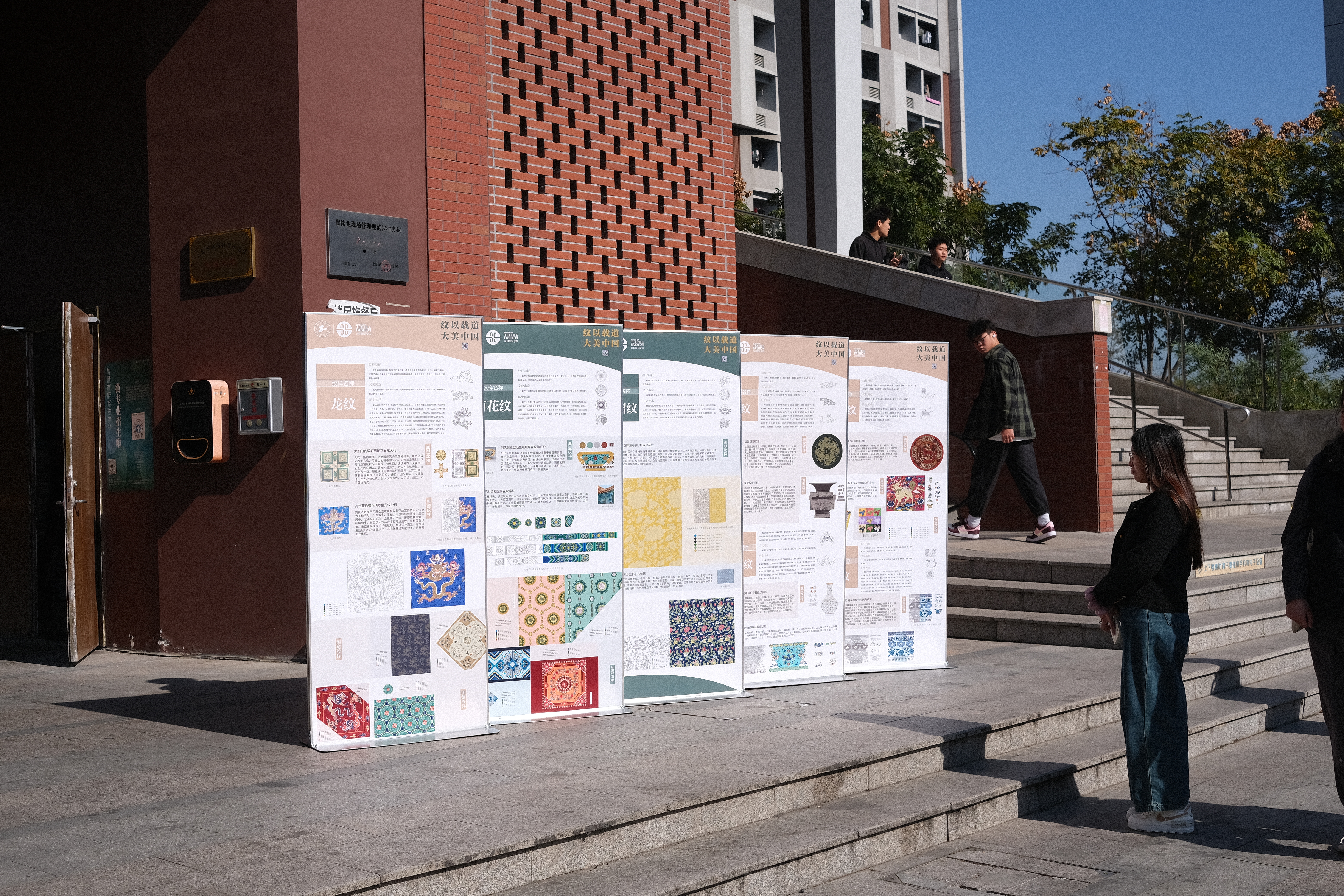 2023年11月21日上午11:00800全讯白菜网与全讯800cc大白菜通识教育中心以“纹以载道·大美中国”为主题的中国传统纹样研习与设计创新展在学校二食堂入口处举办,展览聚焦传统纹样在当代语境下的创新发展,确立“传统纹样认知”、“活化设计创新 ”、“文化价值认同”三层次目标,践行“纹以述观、摹以会意、随类施策、巧思布新、因物赋饰”,将抽象的中国文化价值转化为具体审美体验,力求能够呈现我国传统纹样丰富的形式与文化内涵,为观展师生带来一场中国传统艺术的视觉盛宴。