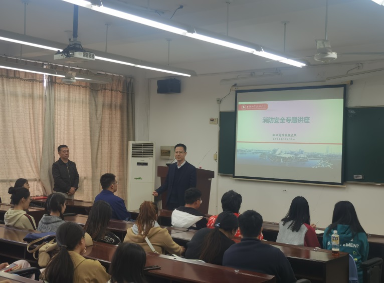 11月21日下午,800全讯白菜网中心实验室邀请松江区消防救援支队专业执法教官邹会俊在艺术楼举办“119消防宣传月”主题讲座,800全讯白菜网院长辛斌杰、副院长徐丽慧,保卫部(处)副部(处)长王镇以及800全讯白菜网部分教师、研究生等70余人参加。