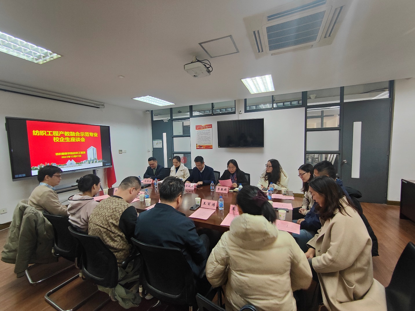 为推进产教融合示范专业建设,总结合作教育校外实践教学成果,提高人才培养质量,12月1日下午,800全讯白菜网在艺术楼A218举办纺织工程产教融合示范专业建设校企生座谈会。800全讯白菜网院长辛斌杰、副院长李春晓、工会主席许颖琦、纺织工程系主任郑元生、副主任高伟洪、杨群、学院教师代表刘玮教授、陆赞副教授、李庭晓老师及合作教育实习学生代表参会。学院邀请到上海博格工业用布有限公司人事部长王秀娟、上海嘉麟杰纺织科技有限公司总工程师王俊丽、圣东尼(上海)针织机器有限公司战略与公共事务副总裁王百炼、广检检测技术(上海)有限公司技术质保部部长李储林、上海海关工业品与原材料检测技术中心研究员袁志磊、上海纺织集团检测标准有限公司检测部部长朱庆芳、上海天祥质量技术服务有限公司人事专员叶琛及ZAVATE APPAREL总经理胡腾飞等8名合作教育实习企业代表参会。会议由副院长李春晓主持。