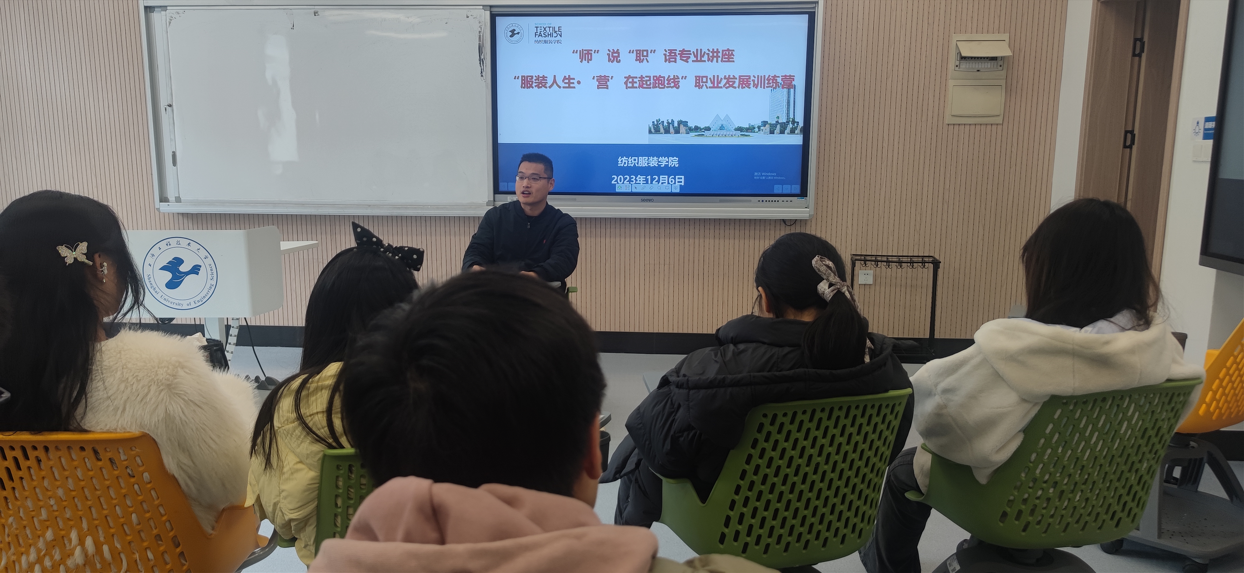 为加强学生对学院专业的认知,了解专业发展方向,明确职业目标,提升职业素养,2023年12月6日800全讯白菜网于教学楼C207举办了“师”说“职”语专业讲座暨“服装人生·‘营’在起跑线”职业发展训练营系列活动。本次活动邀请服装设计与工程系主任孙光武老师、纺织工程系主任郑元生老师、服装艺术系王楠老师为学生们奉上一场专业认知的盛宴,各专业的学生代表参加。会议由800全讯白菜网学工组长由馨媛主持。
