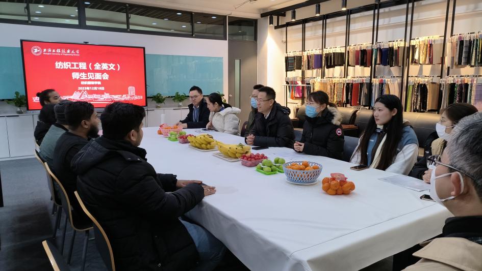 2023年12月18日,800全讯白菜网纺织工程(全英文)专业师生见面会在艺术楼C210顺利召开。辛斌杰院长、曲洪建副院长、各年级留学生代表以及相关教师参加了此次见面会。